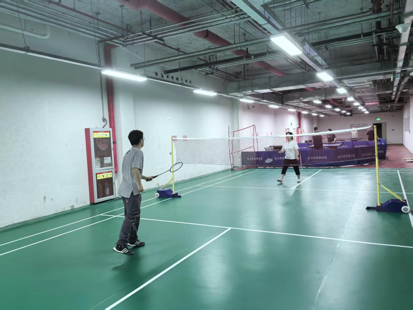 改造后的地下空间焕然一新,整体铺设地胶,既美观大方又脚感舒适,空气中的灰尘也明显减少,居民得以在干净舒适的环境中活动。除硬件设施改善外,社区对地下空间进行了更加合理的规划。在原有2台乒乓球桌的基础上,增设2处羽毛球场地,满足居民更多的运动需求;在场地旁设置休息区,增加了桌椅、便民衣架等设施,方便居民运动前后休息交流。